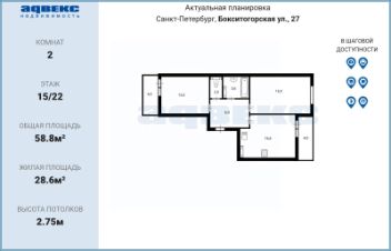 Продается двухкомнатная квартира 58.8 кв.м и кухней 16.6 кв.м в монолитном доме 2020 года постройки. ЖК "Охта Хаус"
