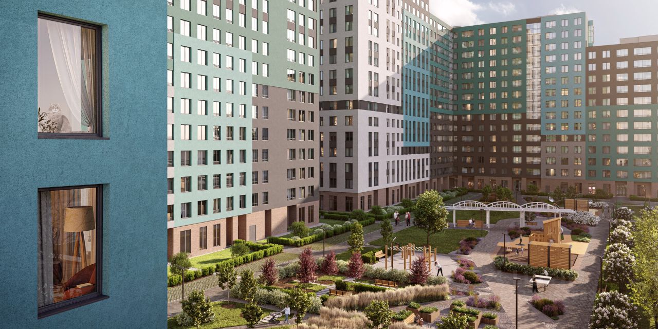 Двор украшают 7 мостов-навесов, а центральная аллея — собственная Нева. Здесь можно позагорать на лежаках или поиграть в шахматы, позаниматься на спортивной площадке или отвести ребенка в игровую зону на встречу с друзьями.