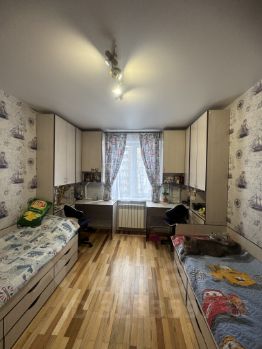 Квартира общей площадью 71.2 кВ.м, прихожая 15кв.м, встроен шкаф купе и много свободного места, кухня 8.2, за счет коридора немного больше, на кухне сделан полный ремонт в начале осени 2023 года, установлена новая кухня со встроенной техникой, с/у раздельный - кафель/плитка, спальня 13.1кВ.м встроен шкаф купе и кровать (остается) ремонт 2023 год, детская 13,3кВ.м изготовлена полностью под заказ для двоих детей со спальными и рабочими личными местами (все остается), имеется кладовка (гардеробная) 4кв.м и гостиная 17.6 кв.м - ремонт сделан в декабре 2024 года, (диван большой разборный остается), с гостиной выход на уютную лоджию, солнечная сторона, выходит на Межевую ул. Кухня, спальня, детская окна во двор.