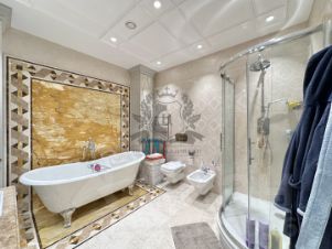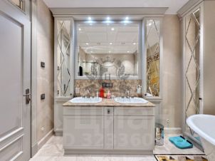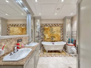 Два современных санузла, выполненных с использованием мрамора и итальянского кафеля
