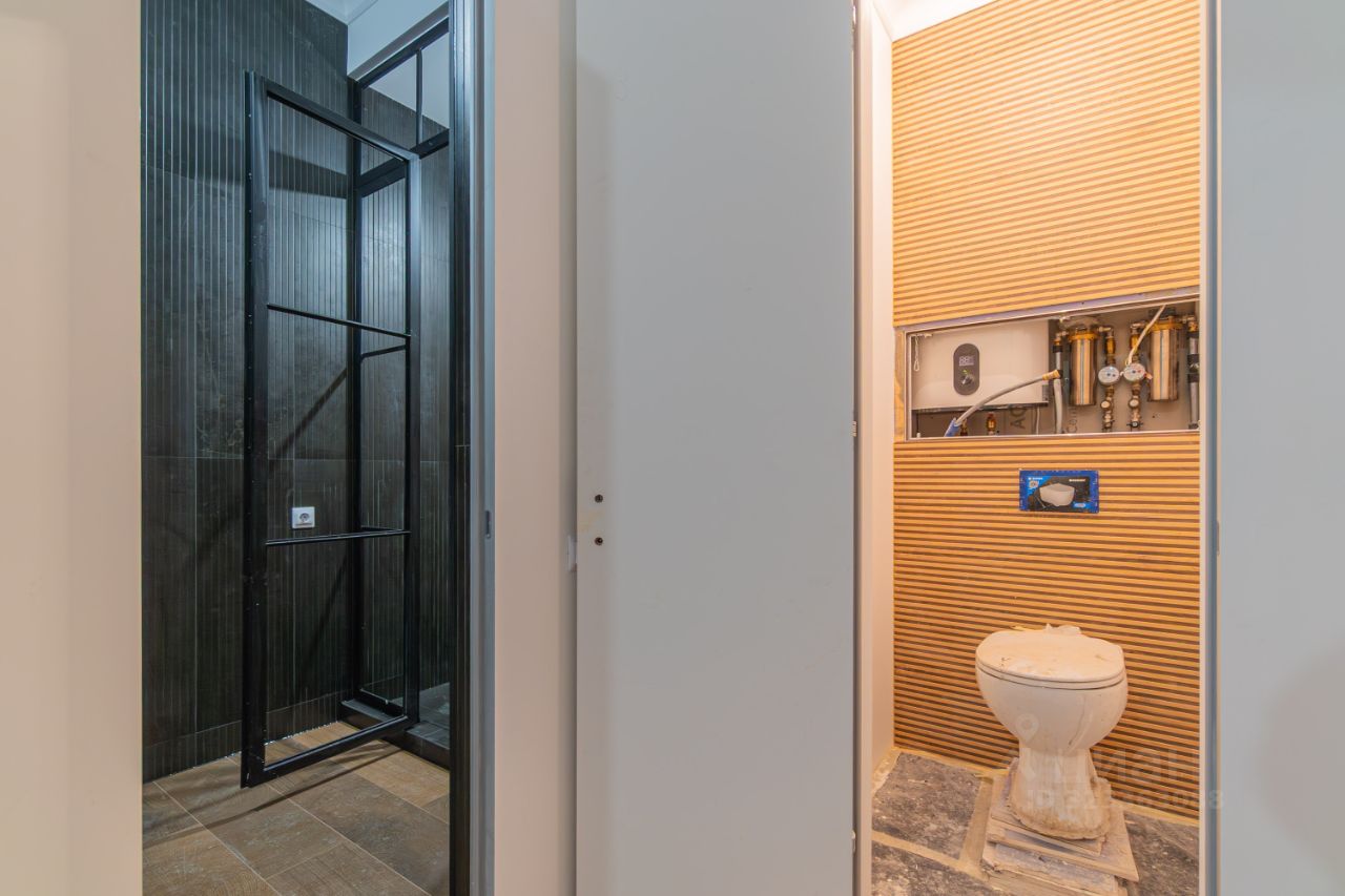 В квартире выполнен очень качественный ремонт из дорогих материалов: полностью произведена замена полов, сантехники, электрики, установлены стеклопакеты, сделана шумоизоляция, потолки и стены выровнены и покрашены, пол в помещениях, кроме ванной  паркет, который частично (временно) закрыт оргалитом, установлены новые современные радиаторы, стеклянные перегородки в комнате и ванной. В СУ стены и пол отделан керамогранитом, установлена инсталляция, бойлер и фильтры для воды.