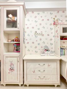 • Есть отдельная гардеробная — хранение вещей организовано удобно и красиво.