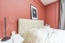 • Спальня площадью 14,7 кв.м, оборудована просторной гардеробной для хранения одежды и личных вещей.