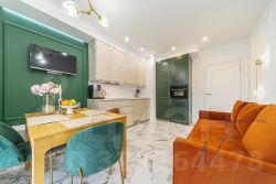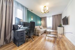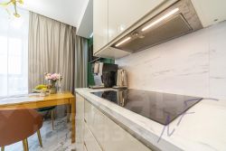 • Современная встроенная техника и мебель, что обеспечивает комфорт и функциональность.