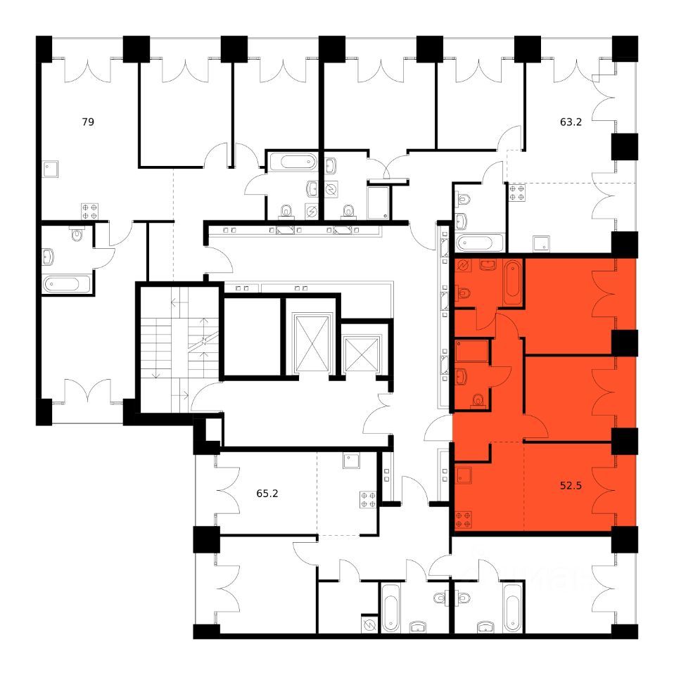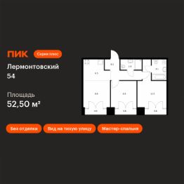 Продаётся 2-комн. квартира площадью 52,5 кв.м на 8 этаже 9 этажного дома (Корпус 2.1, Секция 5) проекта ПИК Лермонтовский 54. Светлый просторный подъезд на уровне земли, функциональная планировка, большие окна, без отделки.