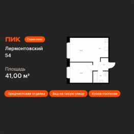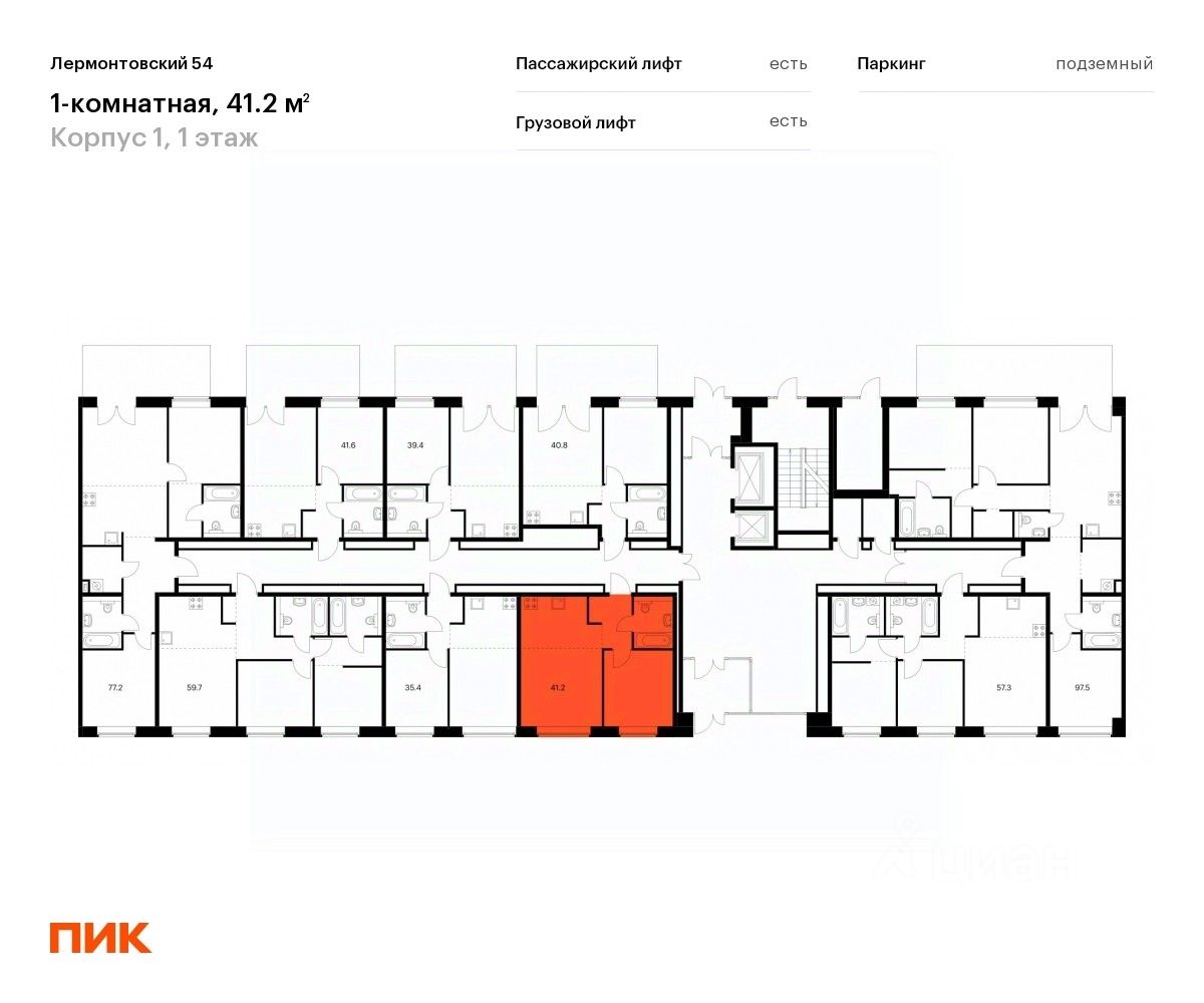 Продаётся 1-комн. квартира площадью 41 кв.м на 1 этаже 9 этажного дома (Корпус 1, Секция 6) проекта ПИК Лермонтовский 54. Светлый просторный подъезд на уровне земли, функциональная планировка, большие окна, предчистовая отделка.