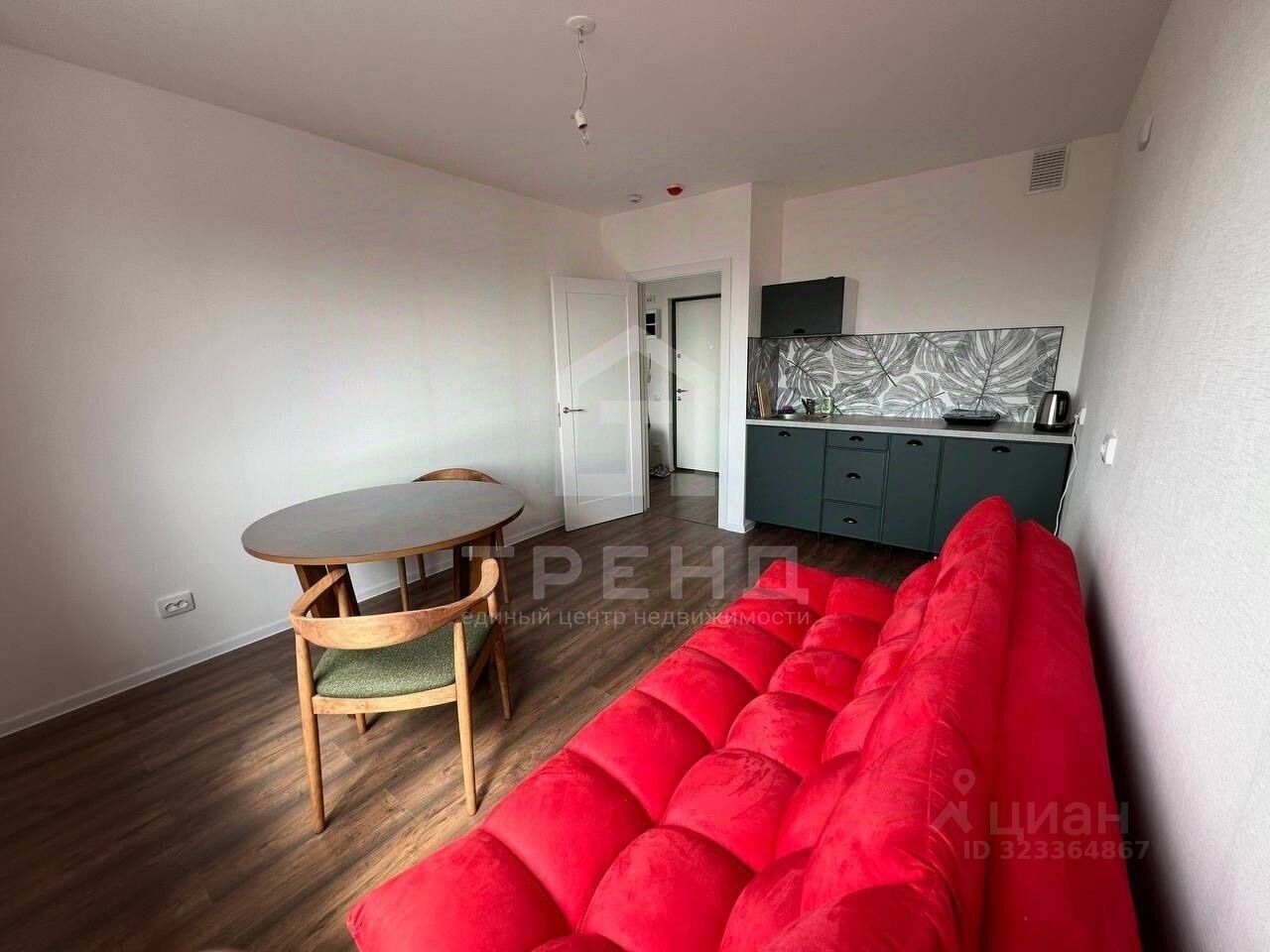 Жилая площадь составляет 10,8 кв. м, просторная кухня — 14,2 кв. м. Окна выходят на улицу, из них открывается прекрасный вид.