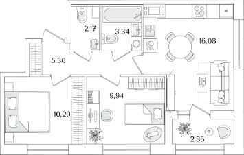 Продаётся 2-комнатная квартира в строящемся доме (Корпус 2 (секции 1, 2)), срок сдачи: I-кв. 2029, общей площадью 48.46 кв.м., на 11 этаже. Новый жилой комплекс "Аурум" от застройщика "РосСтройИнвест" расположен по адресу: г. Санкт-Петербург, Кондратьевский проспект