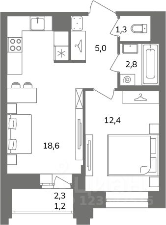 Просторная 2е  квартира 41.2 м² в ЖК "Антверпен" от Л1 у м. Купчино