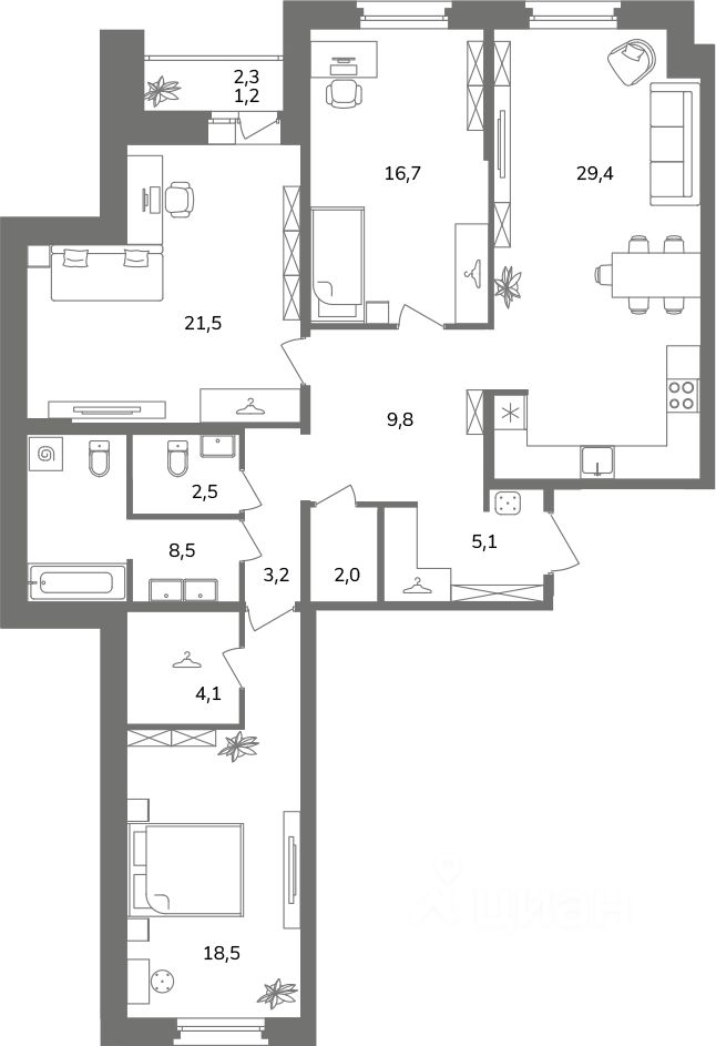 Просторная 3-комнатная квартира 122,5 м² с евро-планировкой в ЖК "Антверпен" от Л1 у м. Купчино