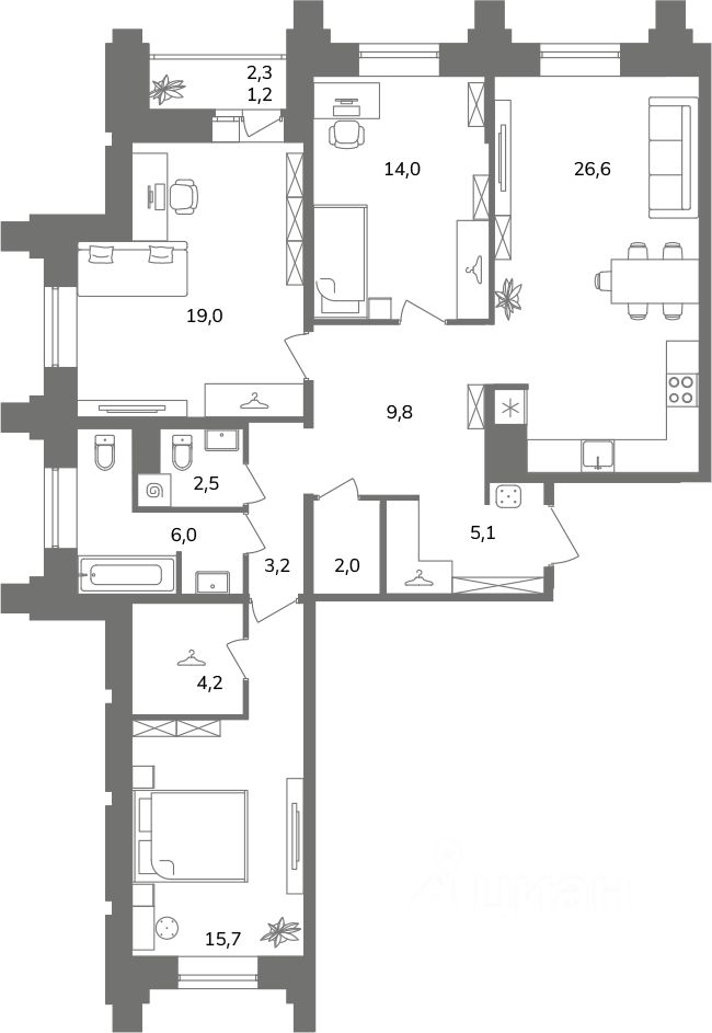Просторная 3-комнатная квартира 120,9 м² с евро-планировкой в ЖК "Антверпен" от Л1 у м. Купчино