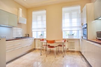 Просторная кухня -гостиная станет идеальным местом для семейных обедов и ужинов или для приёма гостей.