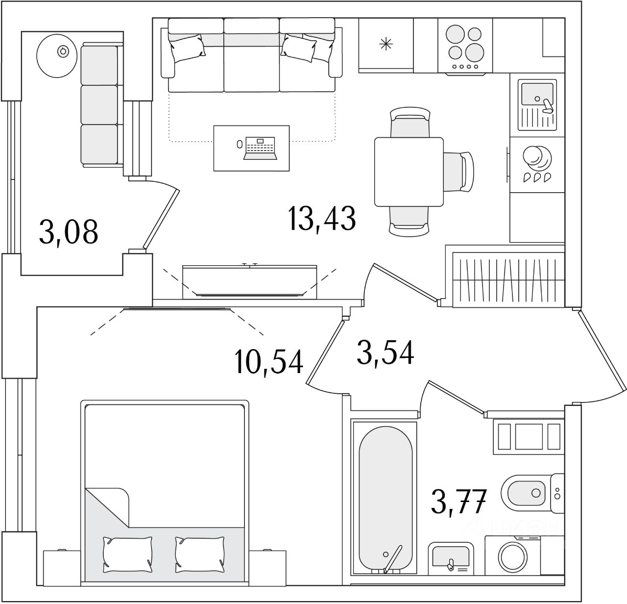 Общая площадь32,82 м²