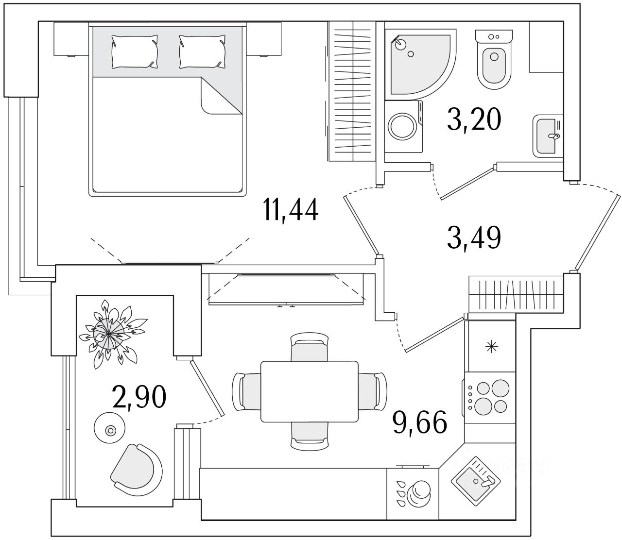 Студия от 19,01 м²