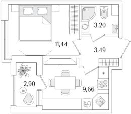 1-комн. квартира, 29,24 м²