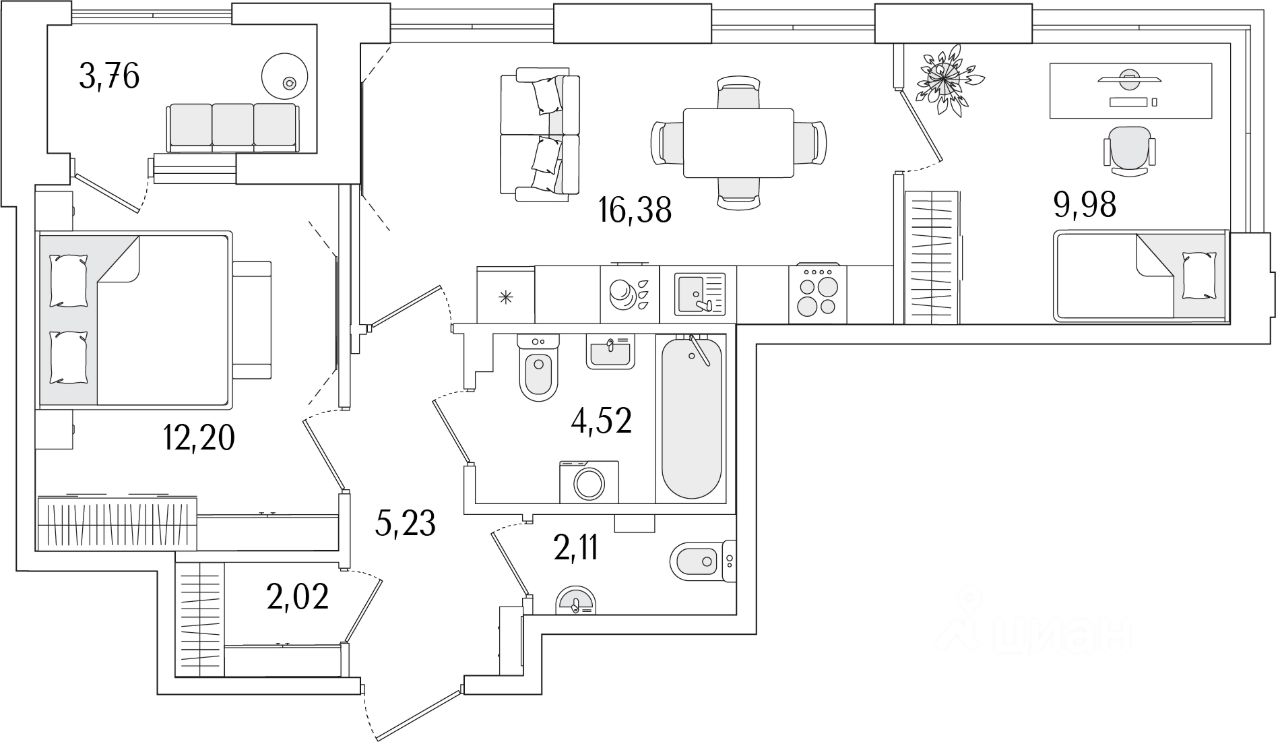 54,32 м²