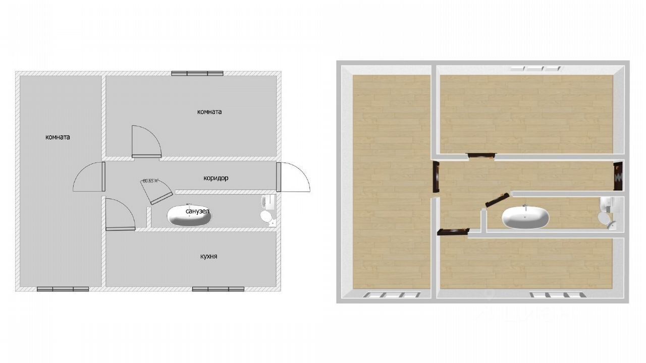 Площaдь: 60,4 кв. м.