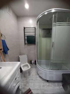 Санузел совмещённый с душевой кабиной, умывальником и стиральной машиной.