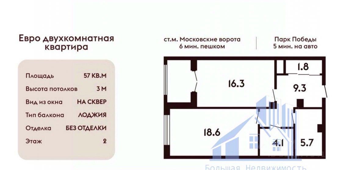 Предлагаю Вашему вниманию 1 к. квартиру с видом на сквер в клубном доме "Victory Plaza".