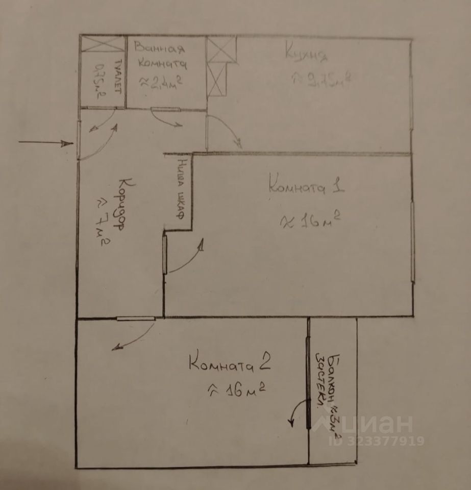 Жилая площадь - 16 и 16 кв. м.