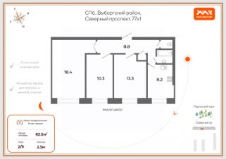 Развитая инфраструктура: взрослая и детская поликлиники, 4 детских сада, 3 школы, лицей, гимназия, больницы.  Удобное транспортное сообщение: 15 минут пешком до ст. м Академическая и Гражданский проспект. Быстрый выезд на КАД. Остановка общественного транспорта около дома. Напротив дома парк Муринский ручей, а так же в пешей доступности парк Сосновка. Через дорогу охраняемая платная парковка, вокруг дома большое количество парковочных мест.