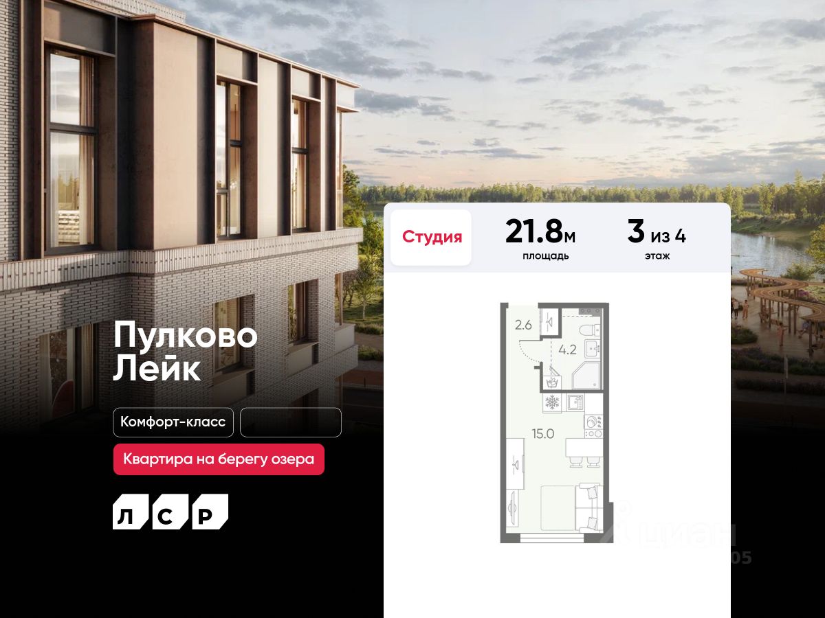 Дома высотой всего 4 этажа, квартиры от уютных студий до трехкомнатных квартир для большой семьи. Широчайший выбор планировок, включая квартиры с мастер-спальнями, патио, каминами, саунами, двухуровневые квартиры. Школа, детские сады, парк на берегу озера и выезды на Пулковское и Петербургское шоссе.