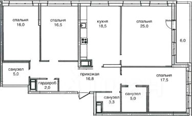 Планировка удобная и функциональная: вместительная прихожая, в которой обустроены отдельные зоны для гардеробных и зон хранения; просторная кухня; четыре изолированных спальни, одна из которых имеет собственный санузел; плюс еще два раздельных санузла; большая лоджия. Квартира находится на 6 этаже 18-ти этажного дома. Окна увеличенные.