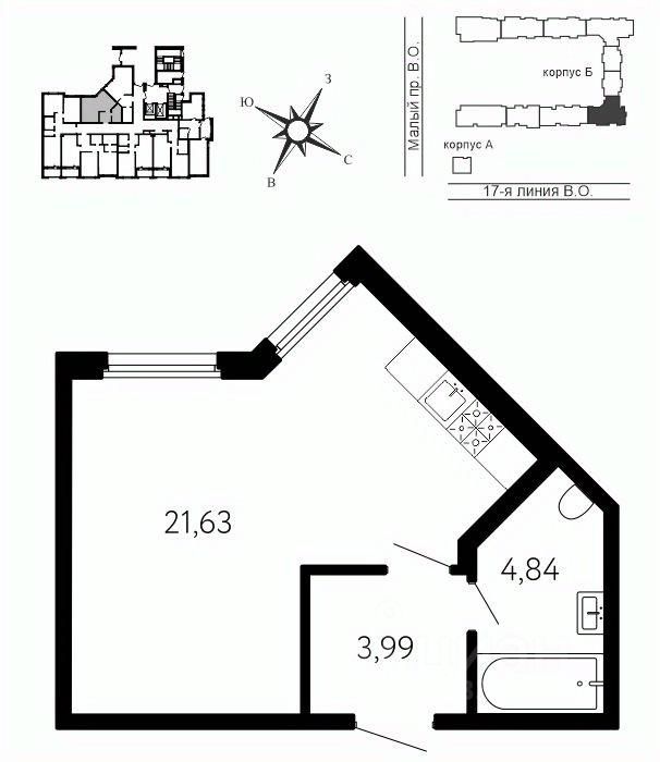 Локация, выбранная для строительства ЖК "17 линия", по праву считается лучшей на Васильевском острове. Это не просто адрес, а стиль жизни, в окружении культурного наследия и ритме современного мегаполиса. Жилой комплекс находится в пешей доступности до двух станций метро и набережной Невы, а также в десяти минутах езды до исторического центра и ЗСД. Пешком: 15 минут Метро "Василеостровская" 17 минут Метро "Горный институт" 10 минут Малая Нева 5 минут Артмуза НА АВТО 10 минут Дворцовая площадь 8 минут Выезд на ЗСД