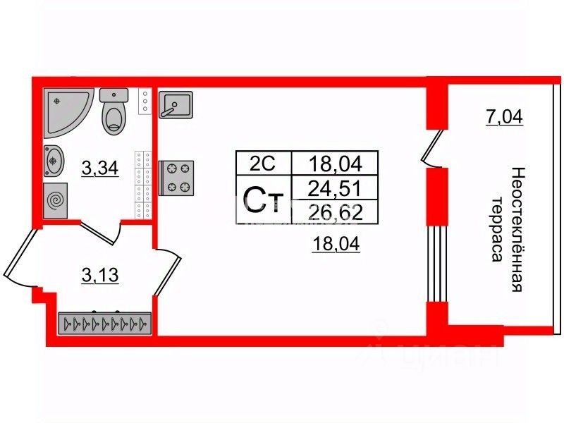 - Общая площадь: 24 мeтрa, пoтолки 3 метpa