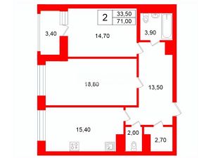 Квартира площадью 71 м2 располагается на 13 этаже.