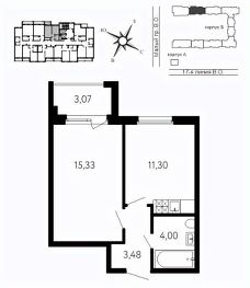 15,3 м²
