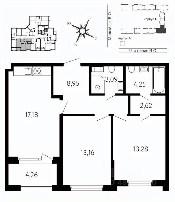 Локация, выбранная для строительства ЖК "17 линия", по праву считается лучшей на Васильевском острове. Это не просто адрес, а стиль жизни, в окружении культурного наследия и ритме современного мегаполиса. Жилой комплекс находится в пешей доступности до двух станций метро и набережной Невы, а также в десяти минутах езды до исторического центра и ЗСД. Пешком: 15 минут Метро "Василеостровская" 17 минут Метро "Горный институт" 10 минут Малая Нева 5 минут Артмуза НА АВТО 10 минут Дворцовая площадь 8 минут Выезд на ЗСД