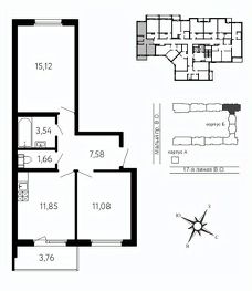 Локация, выбранная для строительства ЖК "17 линия", по праву считается лучшей на Васильевском острове. Это не просто адрес, а стиль жизни, в окружении культурного наследия и ритме современного мегаполиса. Жилой комплекс находится в пешей доступности до двух станций метро и набережной Невы, а также в десяти минутах езды до исторического центра и ЗСД. Пешком: 15 минут Метро "Василеостровская" 17 минут Метро "Горный институт" 10 минут Малая Нева 5 минут Артмуза НА АВТО 10 минут Дворцовая площадь 8 минут Выезд на ЗСД