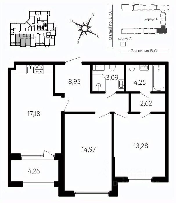 Локация, выбранная для строительства ЖК "17 линия", по праву считается лучшей на Васильевском острове. Это не просто адрес, а стиль жизни, в окружении культурного наследия и ритме современного мегаполиса. Жилой комплекс находится в пешей доступности до двух станций метро и набережной Невы, а также в десяти минутах езды до исторического центра и ЗСД. Пешком: 15 минут Метро "Василеостровская" 17 минут Метро "Горный институт" 10 минут Малая Нева 5 минут Артмуза НА АВТО 10 минут Дворцовая площадь 8 минут Выезд на ЗСД