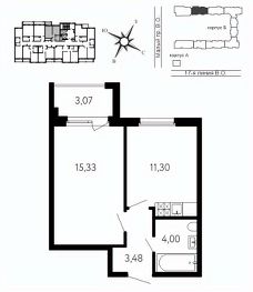 Жилая площадь15,3 м²