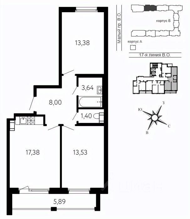 Локация, выбранная для строительства ЖК "17 линия", по праву считается лучшей на Васильевском острове. Это не просто адрес, а стиль жизни, в окружении культурного наследия и ритме современного мегаполиса. Жилой комплекс находится в пешей доступности до двух станций метро и набережной Невы, а также в десяти минутах езды до исторического центра и ЗСД. Пешком: 15 минут Метро "Василеостровская" 17 минут Метро "Горный институт" 10 минут Малая Нева 5 минут Артмуза НА АВТО 10 минут Дворцовая площадь 8 минут Выезд на ЗСД