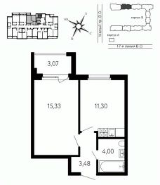 Жилая площадь15,3 м²