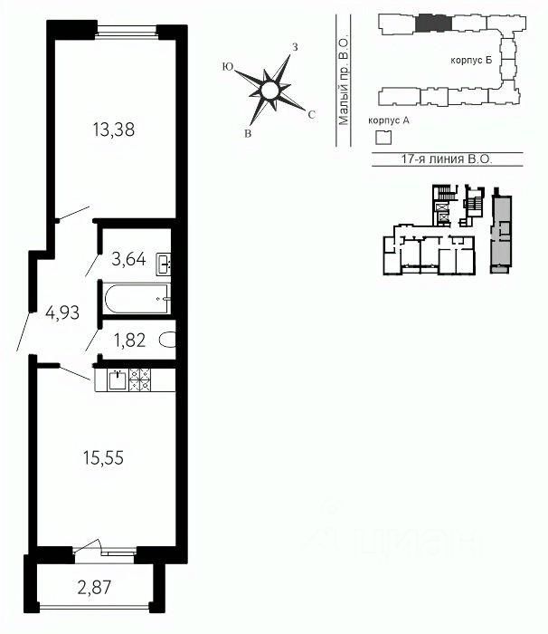 Локация, выбранная для строительства ЖК "17 линия", по праву считается лучшей на Васильевском острове. Это не просто адрес, а стиль жизни, в окружении культурного наследия и ритме современного мегаполиса. Жилой комплекс находится в пешей доступности до двух станций метро и набережной Невы, а также в десяти минутах езды до исторического центра и ЗСД. Пешком: 15 минут Метро "Василеостровская" 17 минут Метро "Горный институт" 10 минут Малая Нева 5 минут Артмуза НА АВТО 10 минут Дворцовая площадь 8 минут Выезд на ЗСД
