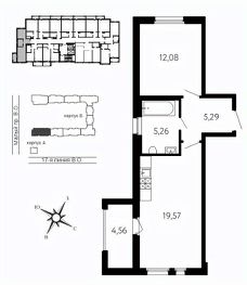 Общая площадь43,57 м²