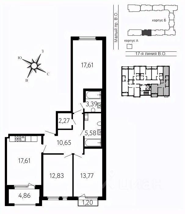 Локация, выбранная для строительства ЖК "17 линия", по праву считается лучшей на Васильевском острове. Это не просто адрес, а стиль жизни, в окружении культурного наследия и ритме современного мегаполиса. Жилой комплекс находится в пешей доступности до двух станций метро и набережной Невы, а также в десяти минутах езды до исторического центра и ЗСД. Пешком: 15 минут Метро "Василеостровская" 17 минут Метро "Горный институт" 10 минут Малая Нева 5 минут Артмуза НА АВТО 10 минут Дворцовая площадь 8 минут Выезд на ЗСД