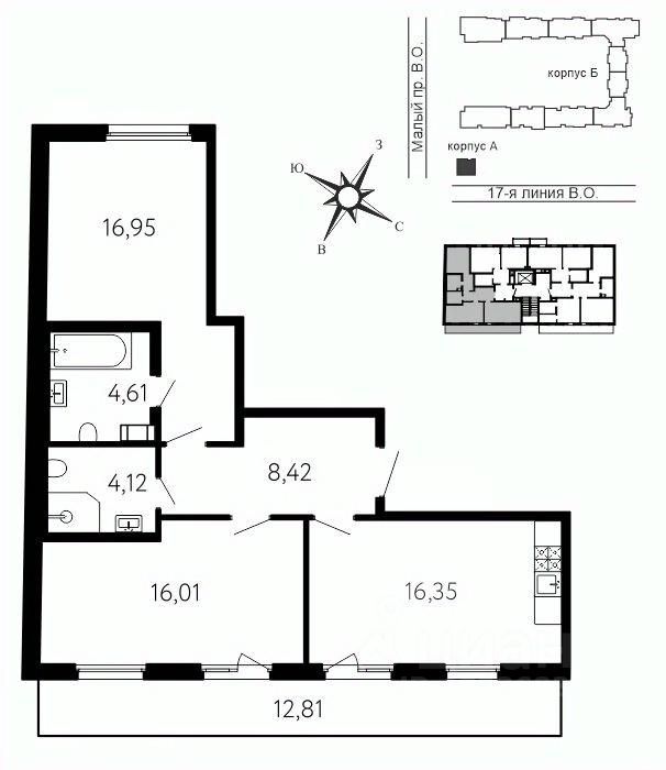 Локация, выбранная для строительства ЖК "17 линия", по праву считается лучшей на Васильевском острове. Это не просто адрес, а стиль жизни, в окружении культурного наследия и ритме современного мегаполиса. Жилой комплекс находится в пешей доступности до двух станций метро и набережной Невы, а также в десяти минутах езды до исторического центра и ЗСД. Пешком: 15 минут Метро "Василеостровская" 17 минут Метро "Горный институт" 10 минут Малая Нева 5 минут Артмуза НА АВТО 10 минут Дворцовая площадь 8 минут Выезд на ЗСД