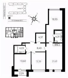 Локация, выбранная для строительства ЖК "17 линия", по праву считается лучшей на Васильевском острове. Это не просто адрес, а стиль жизни, в окружении культурного наследия и ритме современного мегаполиса. Жилой комплекс находится в пешей доступности до двух станций метро и набережной Невы, а также в десяти минутах езды до исторического центра и ЗСД. Пешком: 15 минут Метро "Василеостровская" 17 минут Метро "Горный институт" 10 минут Малая Нева 5 минут Артмуза НА АВТО 10 минут Дворцовая площадь 8 минут Выезд на ЗСД