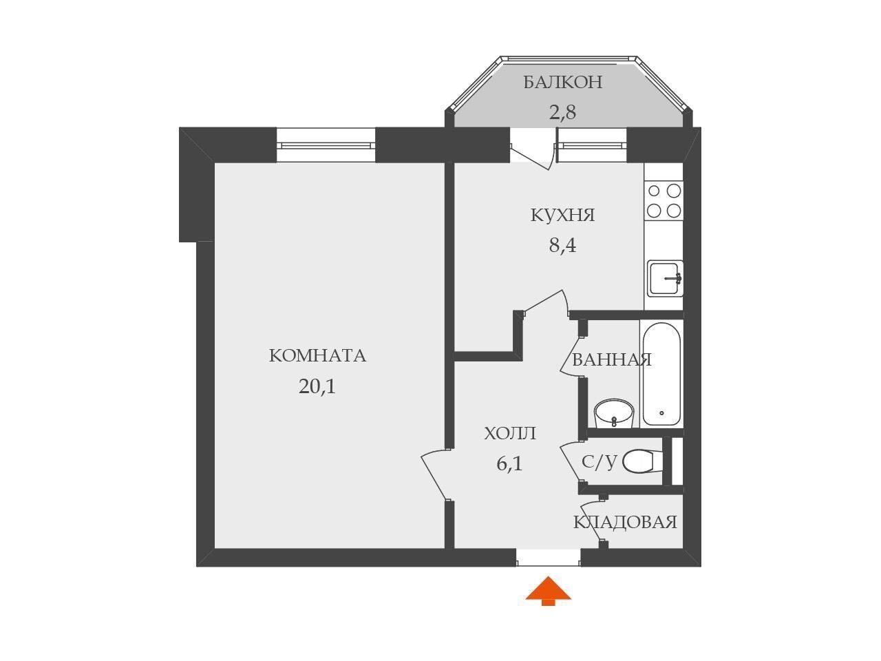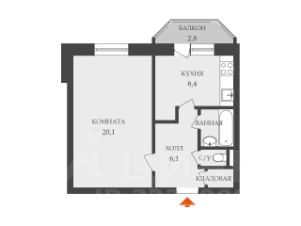 Общая площадь квартиры  39,2 кв. м., кухня 8,4 кв.м., комната 20,1 кв. м., прихожая 6,1 кв. м., санузел раздельный, застекленная лоджия.