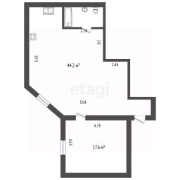 Две комнаты: большая и светлая кухня-гостиная с лепниной на потолке и изолированная спальня.