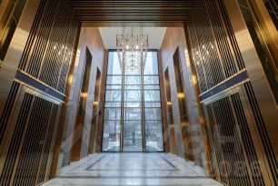 -Парадный холл с высокими потолками, мозаичным панно и зоной ресепшн