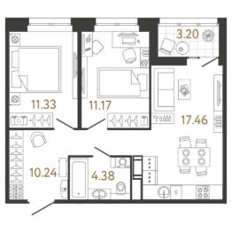 Общая площадь54,58 м²