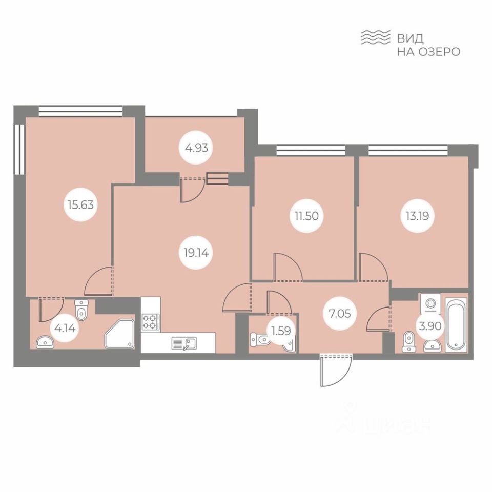 Площадь кухни19,1 м²