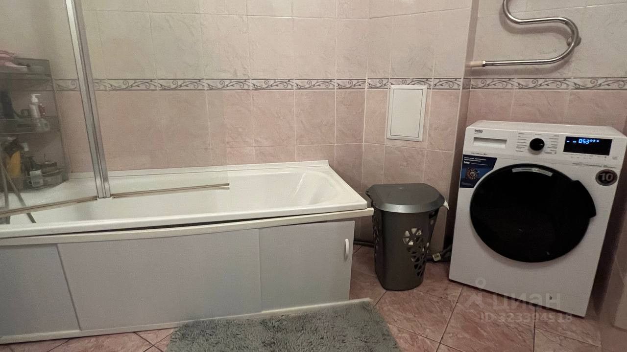Ванная комната с современной стиральной машиной.