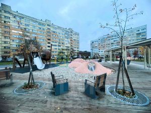Расположена в тихом районе, где вы сможете насладиться спокойствием и уютом. Напротив подъезда открылся после масштабного благоустройства сквер, оборудованный экотропами (деревянные настилы на винтовых сваях) для сохранности деревьев, газонов и кустарников. Площадь сквера более 47 тысяч кв. м. Освещают пространство 53 новых светильника. Рядом с домом новые площадки. оснащены современным оборудованием, отвечающим всем требованиям безопасности. Детям доступны разнообразные игровые элементы: горки, качели, турники, песочницы. Дизайн площадок отличается красотой и эстетикой, что делает их не только функциональными, но и привлекательными.