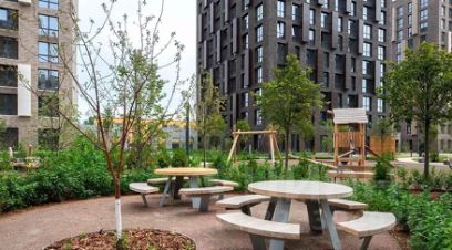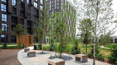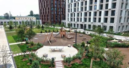 Территория благоустроена: безопасные прогулочные зоны, детские площадки, подземный паркинг, охрана и приватность. Здесь чувствуется порядок, спокойствие и чистая энергия пространства.